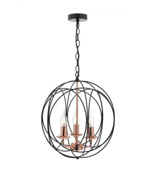 Phoenix 3lt Black & Copper Caged Armed Pendant