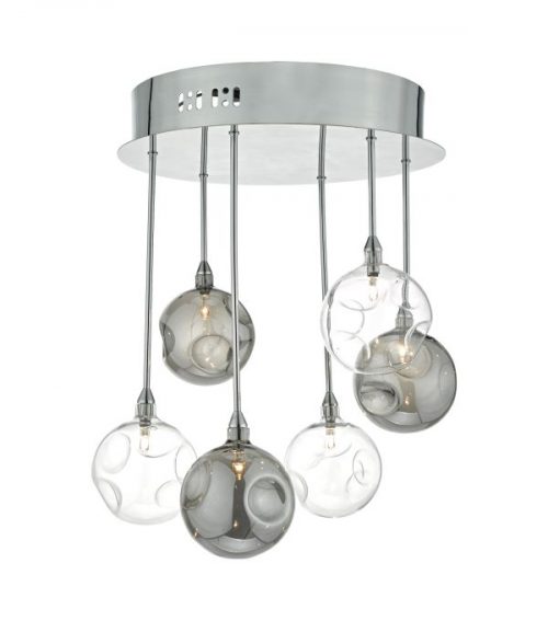 Quinn 6lt Smoked & Clear Glass Semi Flush Cluster Pendant