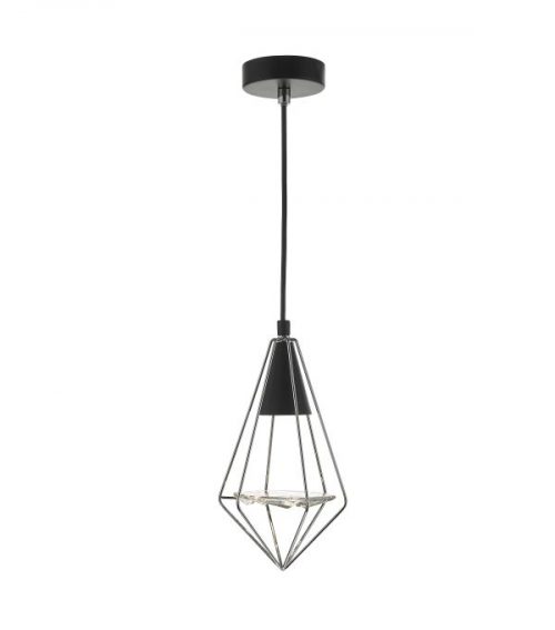 Gianni 1lt Black Polished Chrome & Glass Pendant