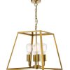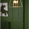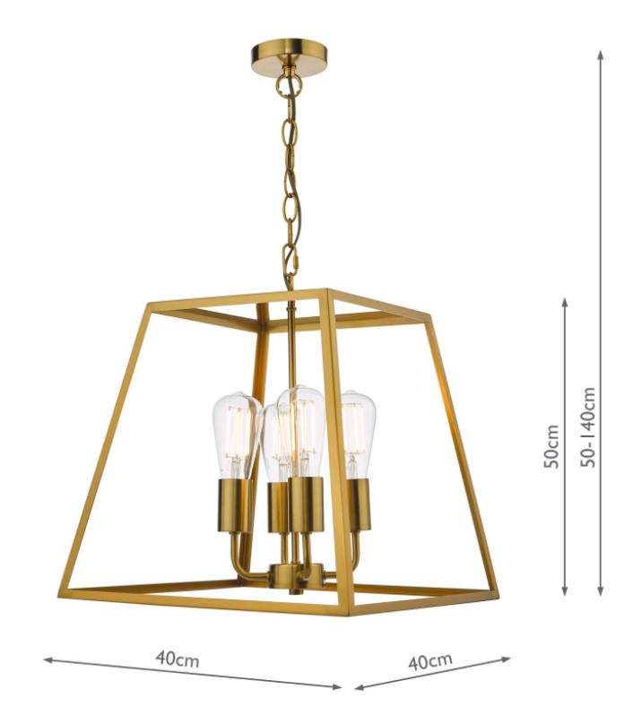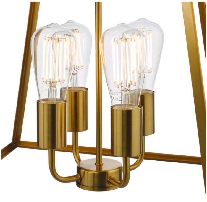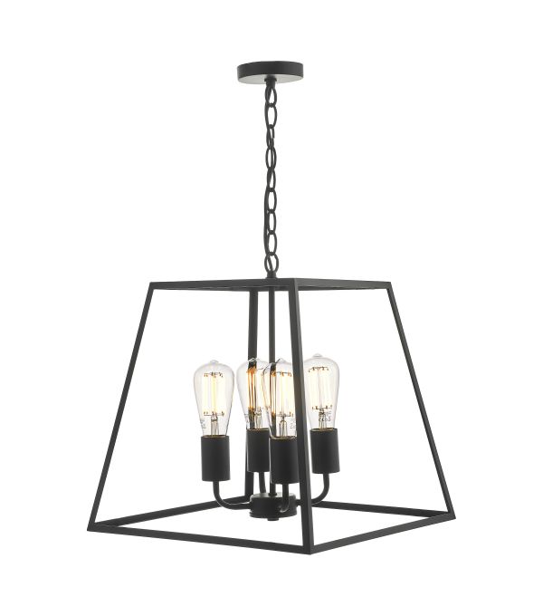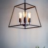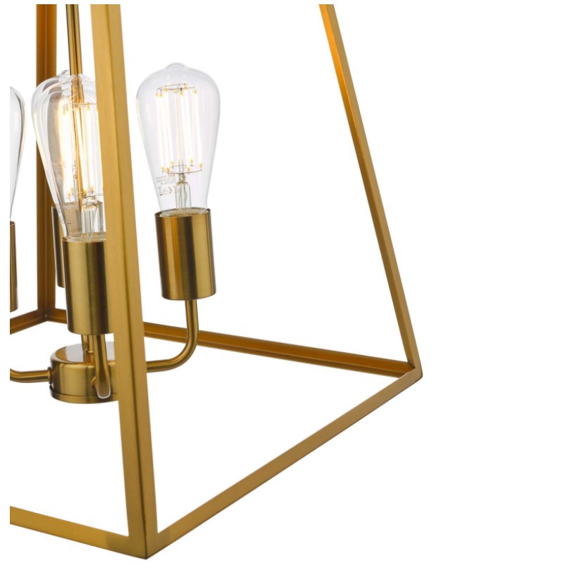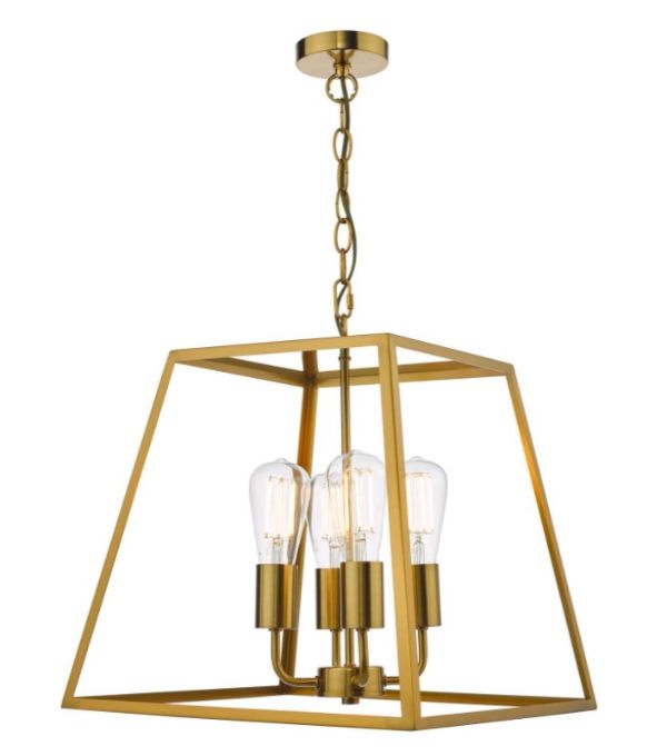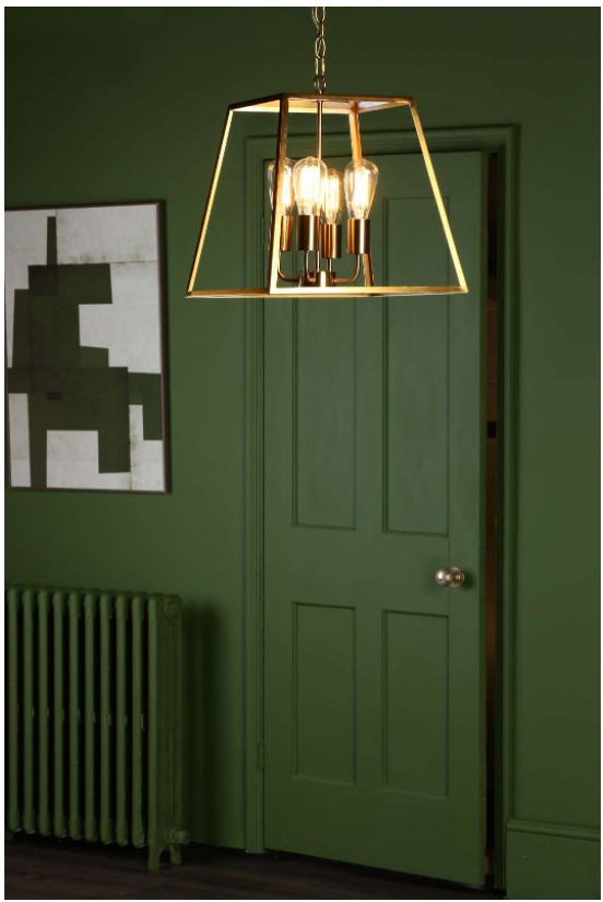 A tapered square lantern-style pendant in either a matt black or a natural brass finish.