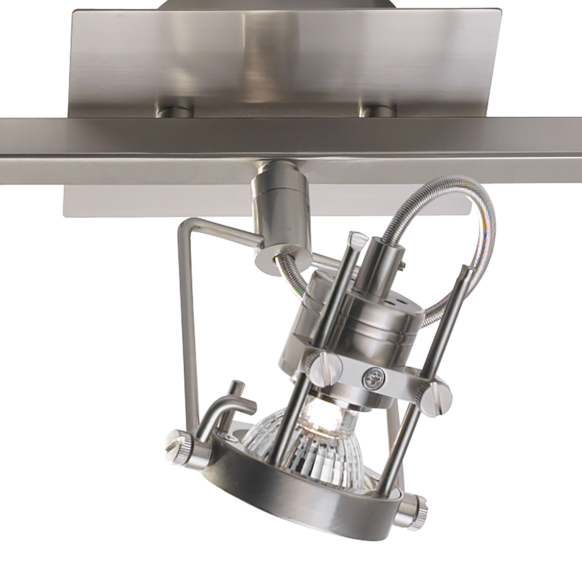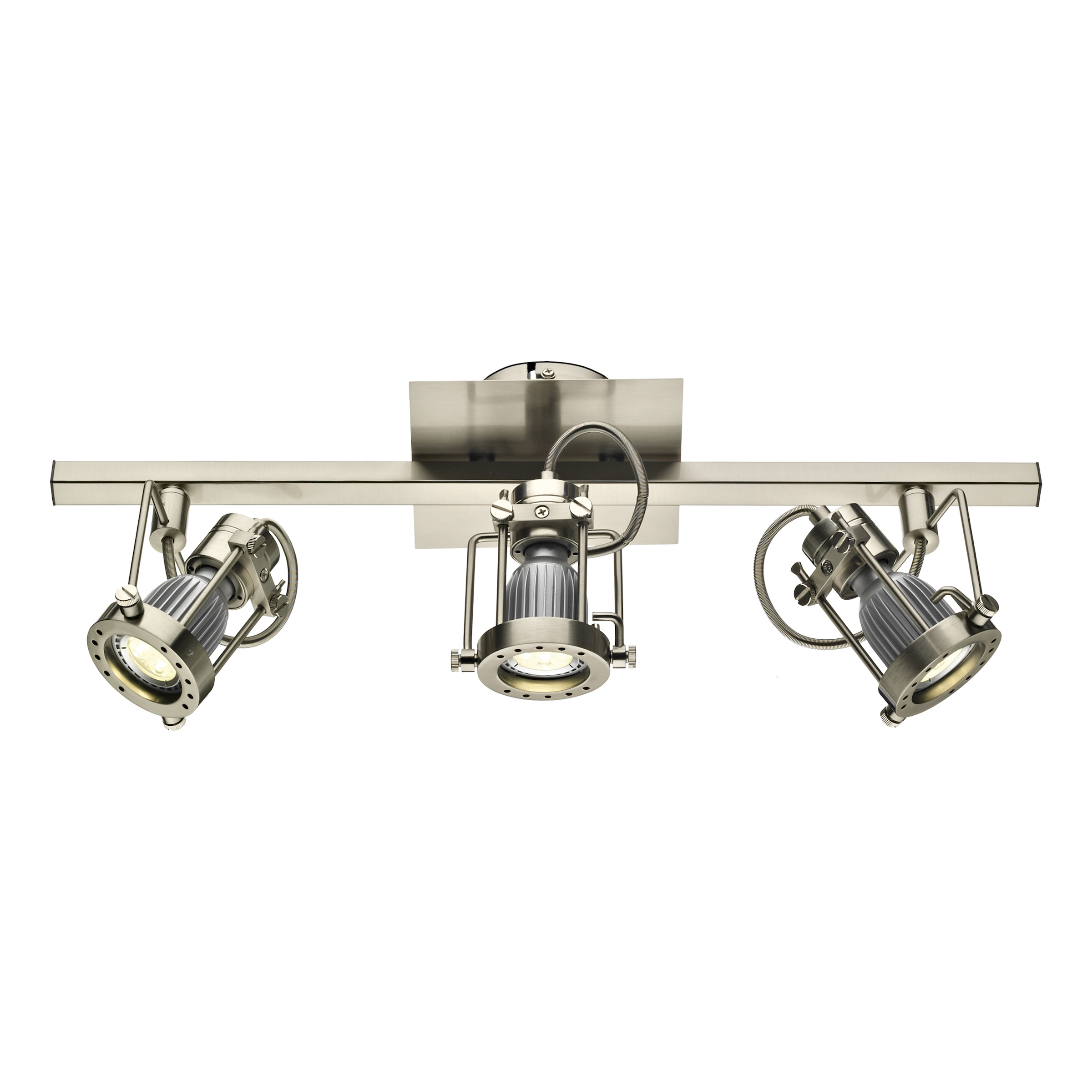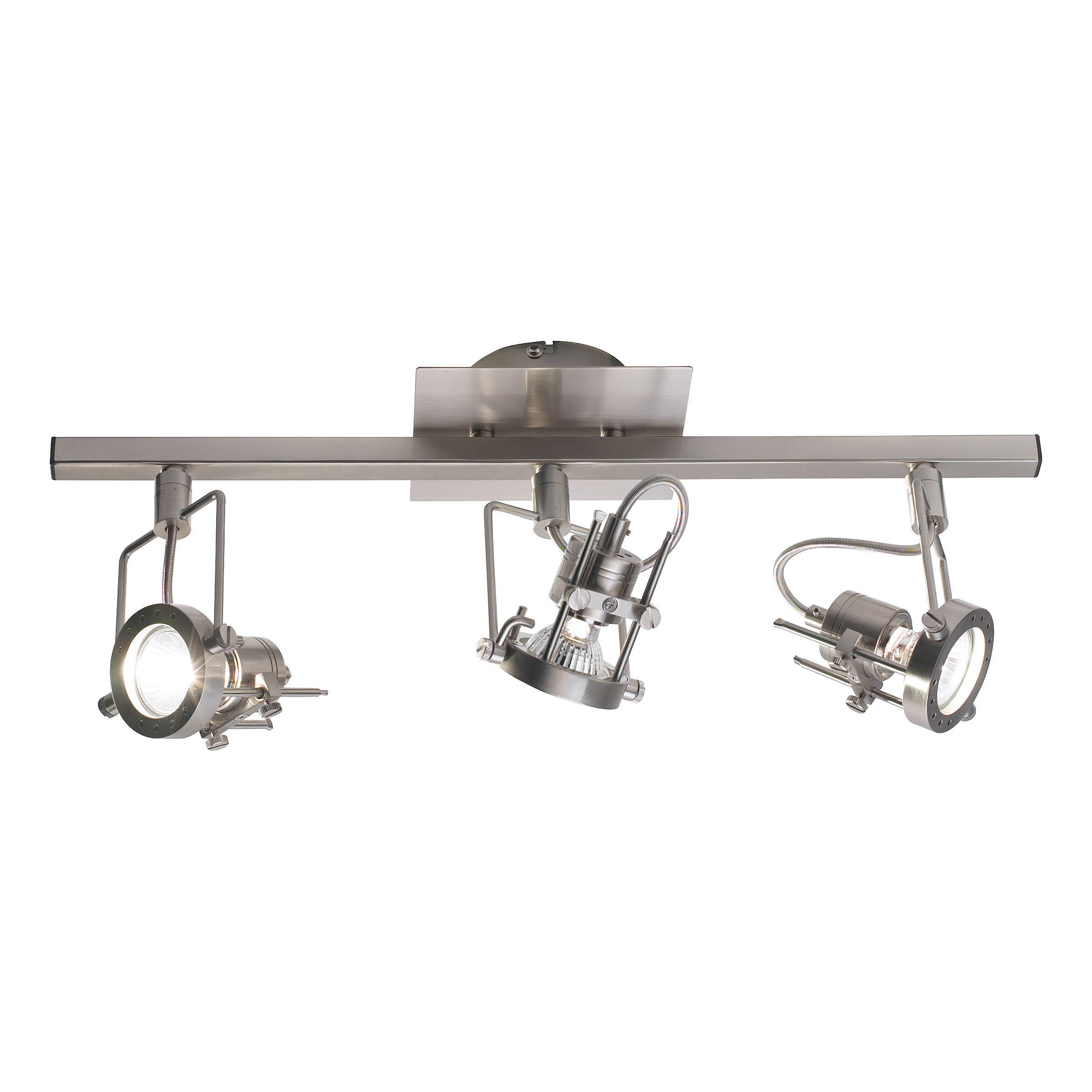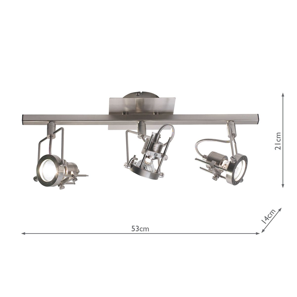 Finished in satin chrome, this bar light features 3 lamps with swivel heads and a front ‘lens’ cap.