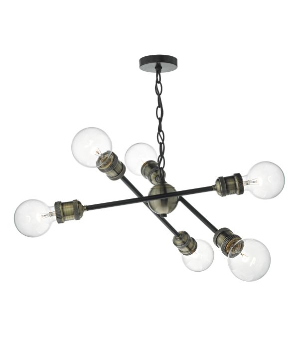 Brigade 6lt Black & Antique Brass Armed Pendant
