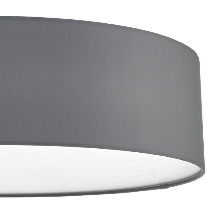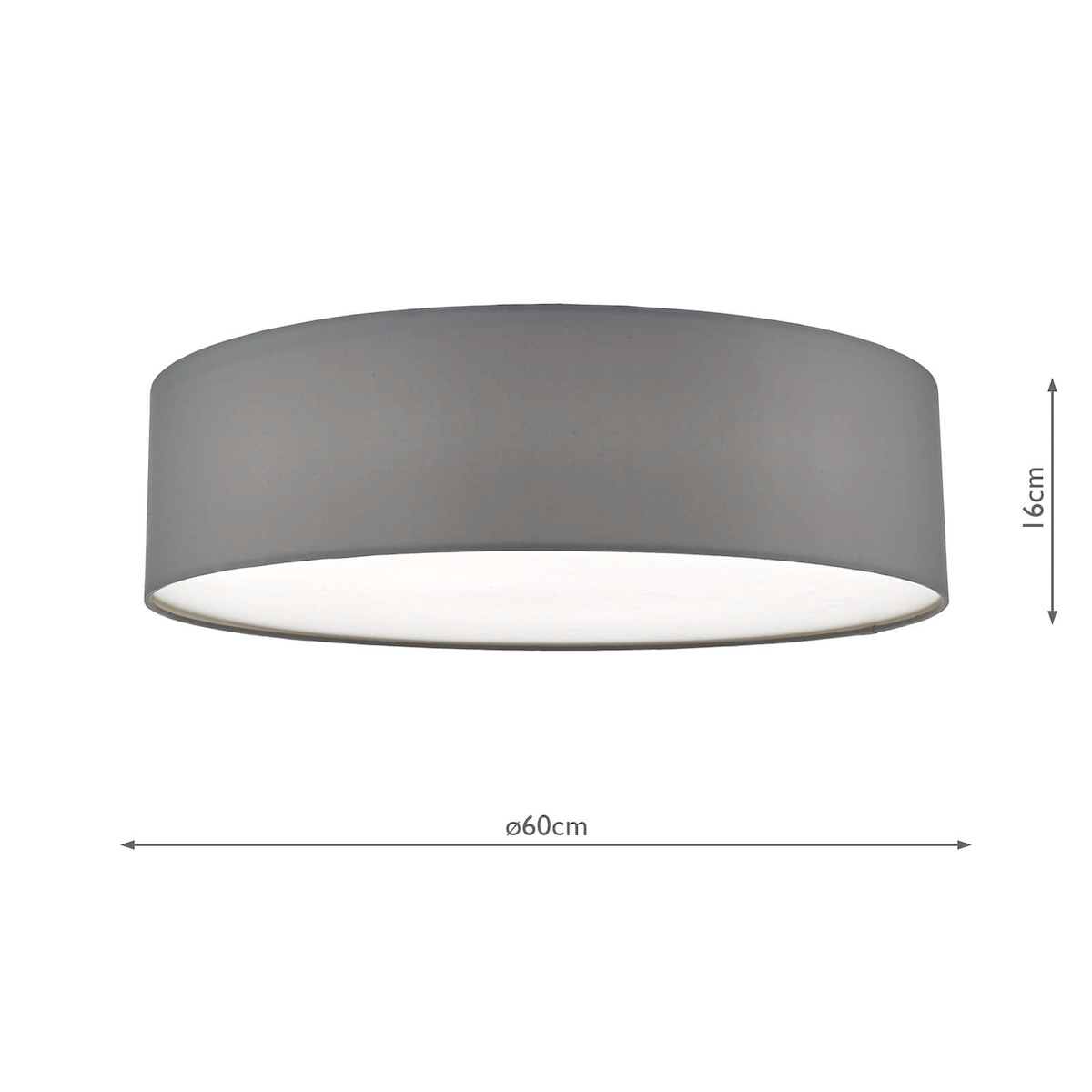 A minimalistic design, featuring a Grey, White or Taupe faux silk drum shade with a frosted acrylic diffuser for a soft light when lit.