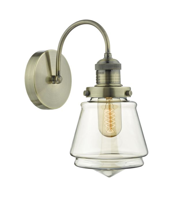 Curtis 1lt Antique Brass & Champagne Glass Wall Light