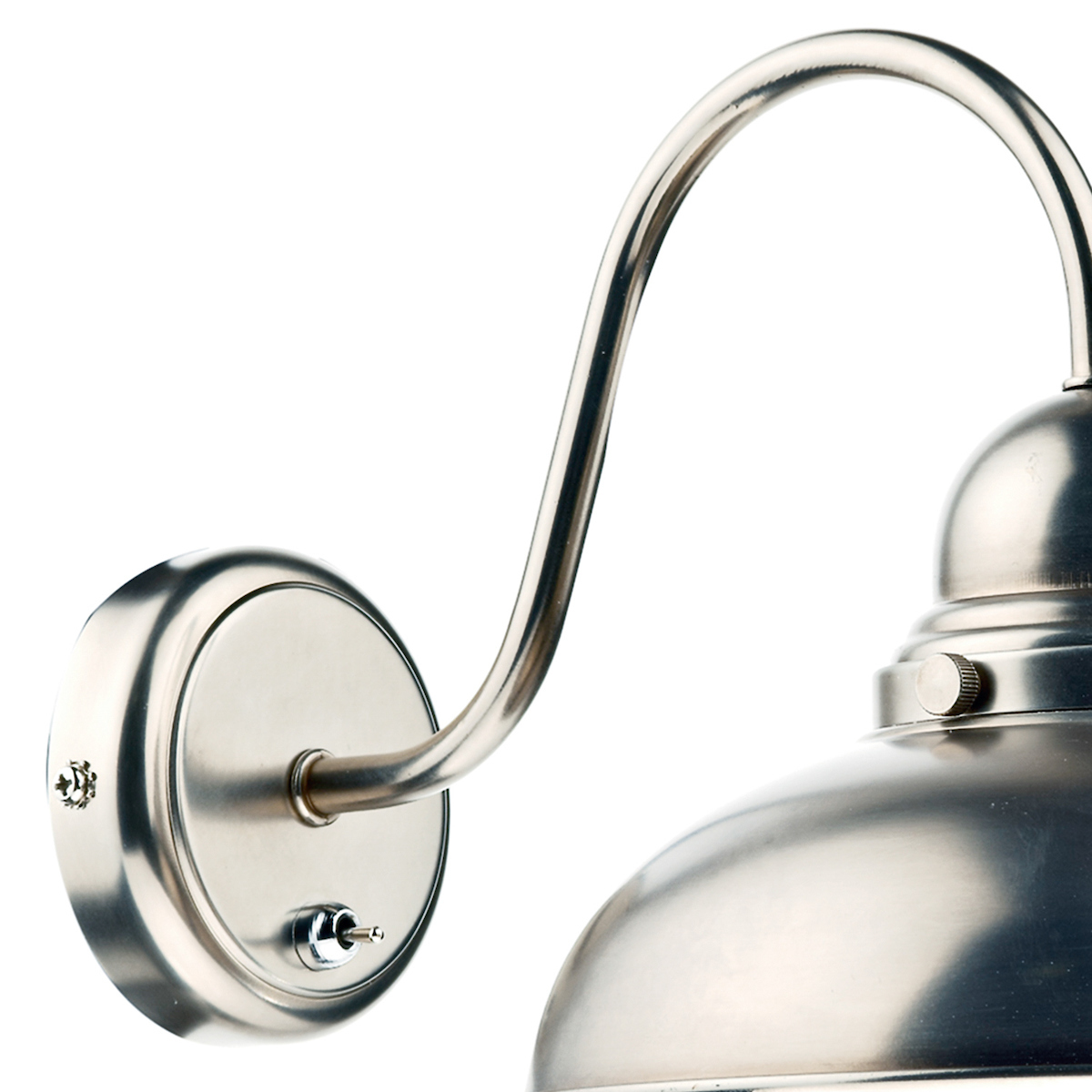 Retro inspired wall light, finished in antique chrome and is toggle switched.