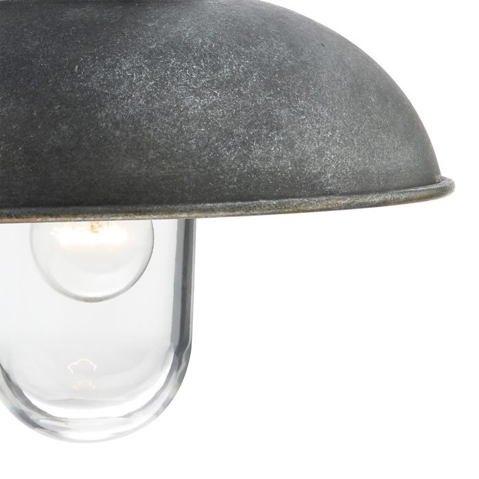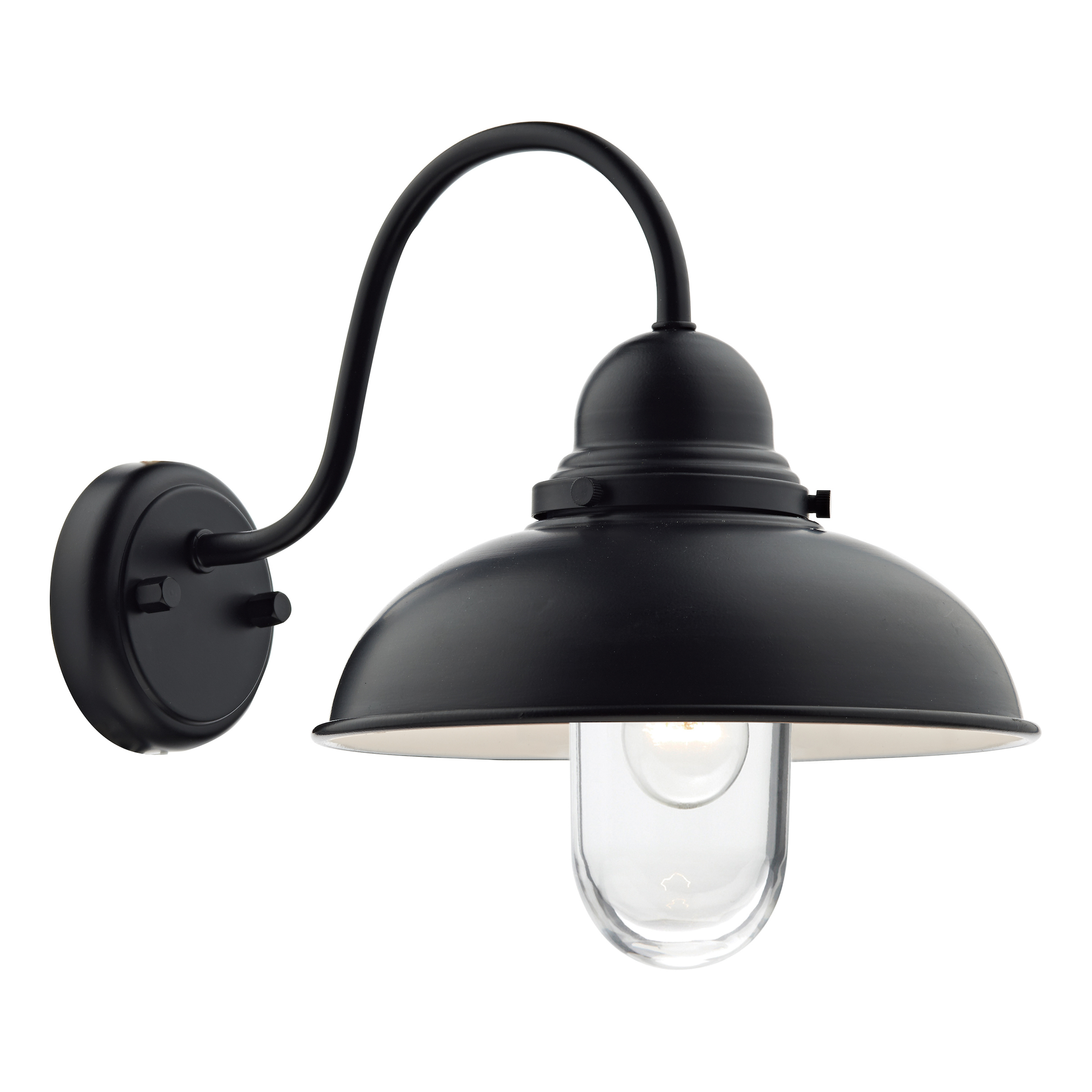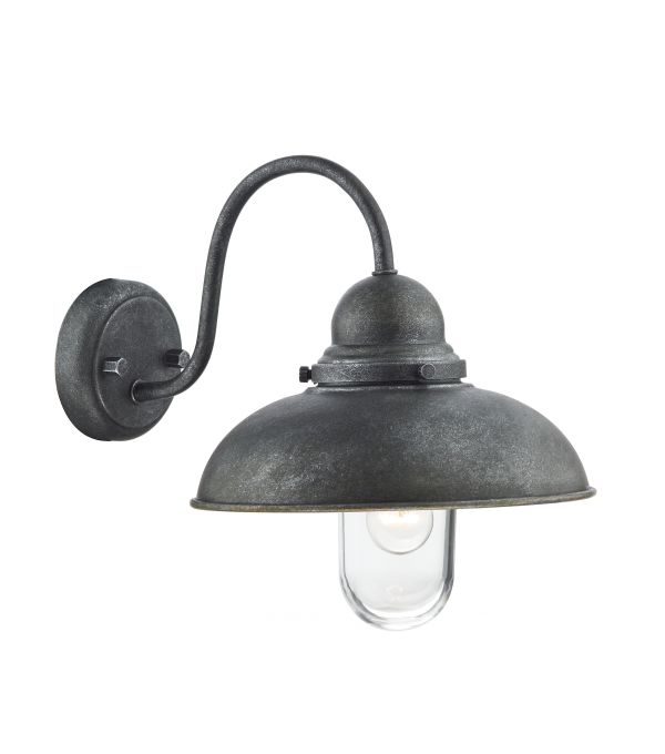 Retro inspired outdoor wall light finished in either a matt black or aged iron.