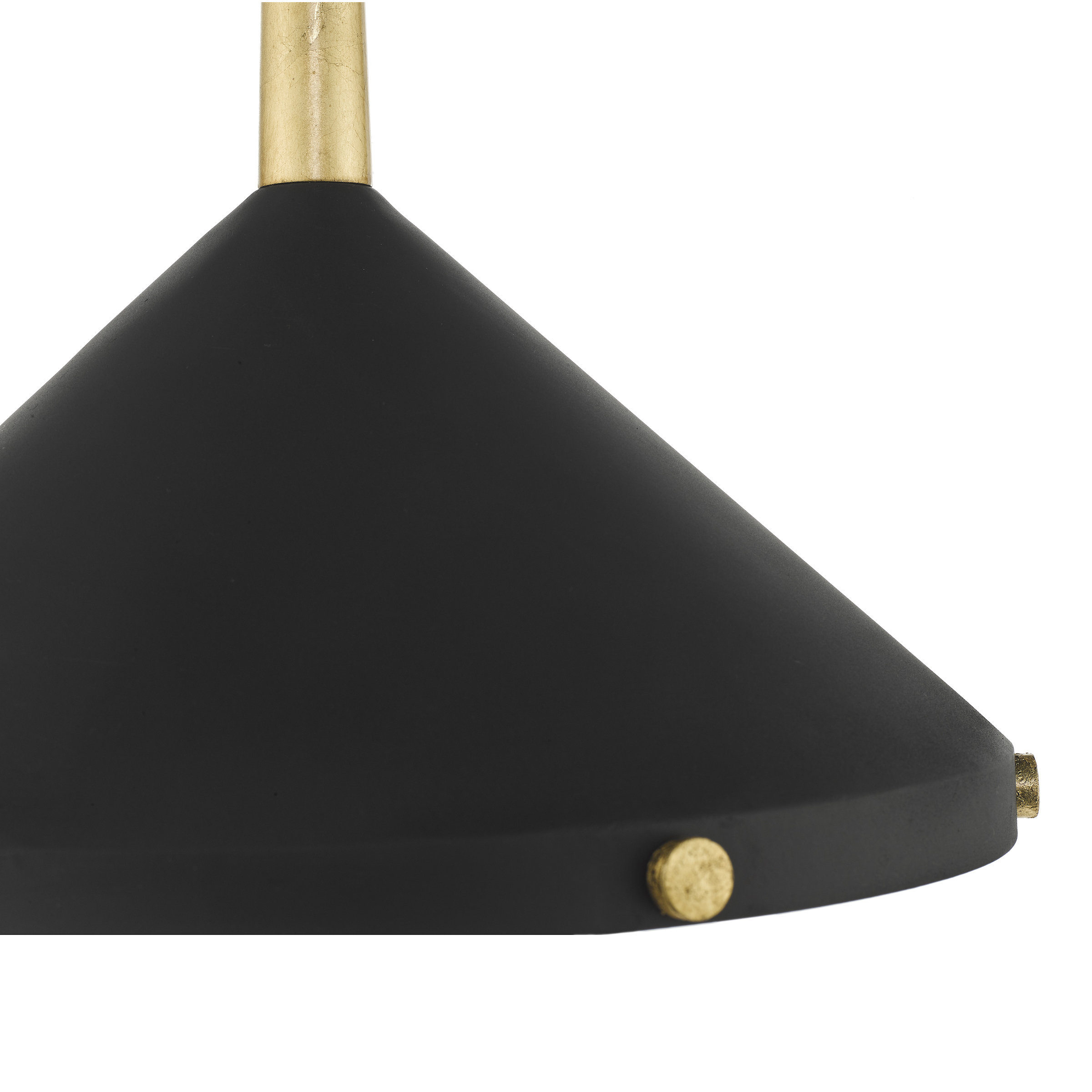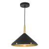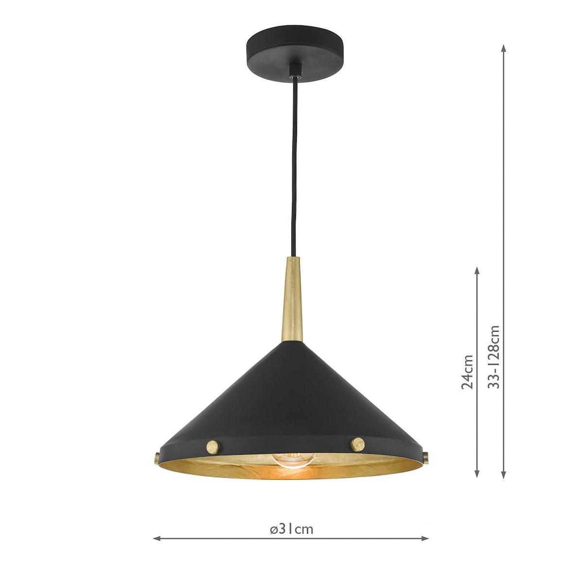 An industrial style metal pendant in a matt black finish with a hand applied gold leaf inner.