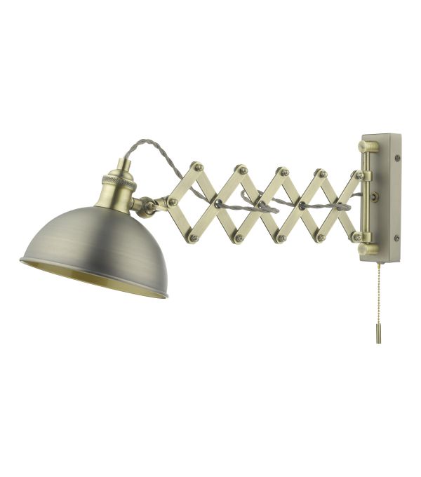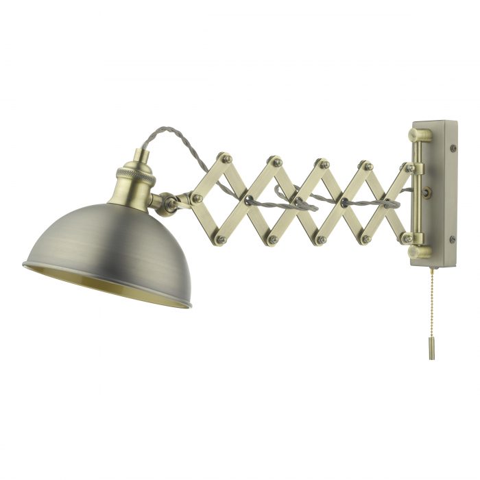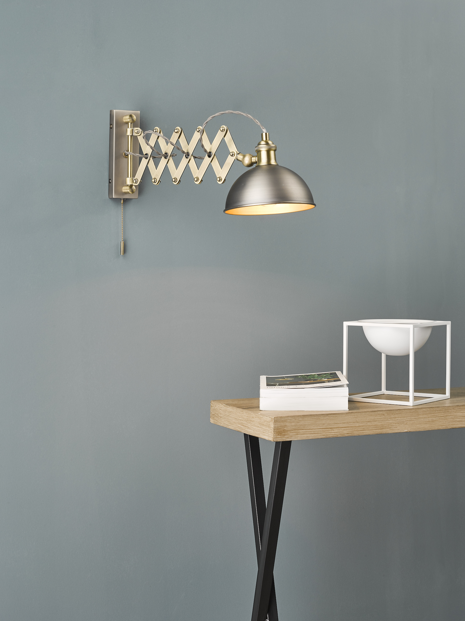 An extendable single spot light finished in a mix of antique chrome & antique brass. Featuring a convenient toggle switch located on the back plate.