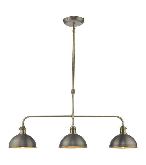 A 3 light bar pendant finished in a mix of antique chrome & antique brass.