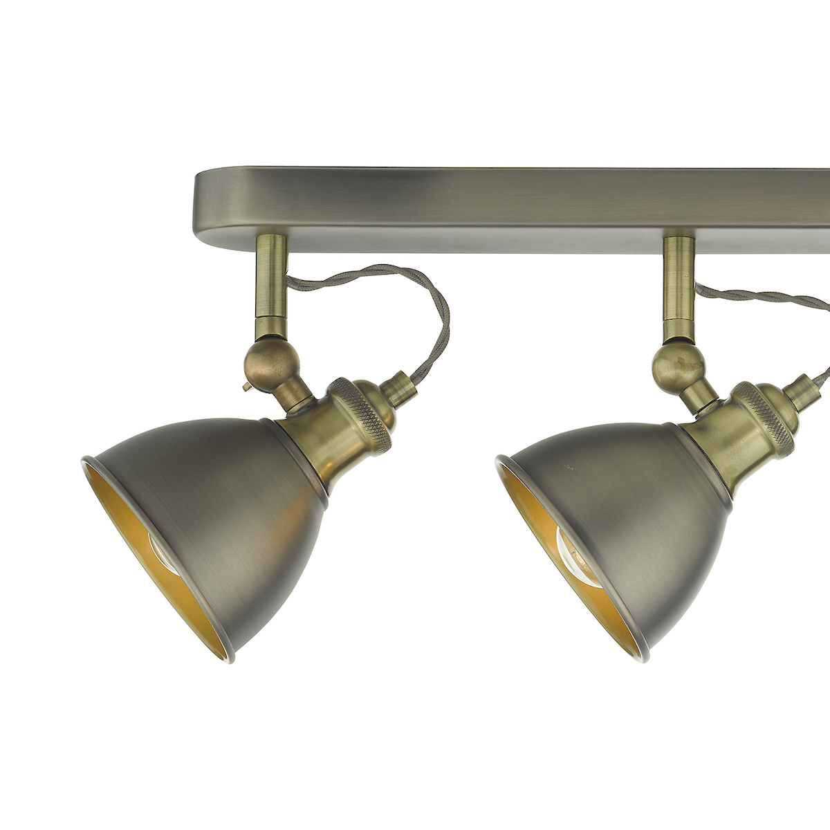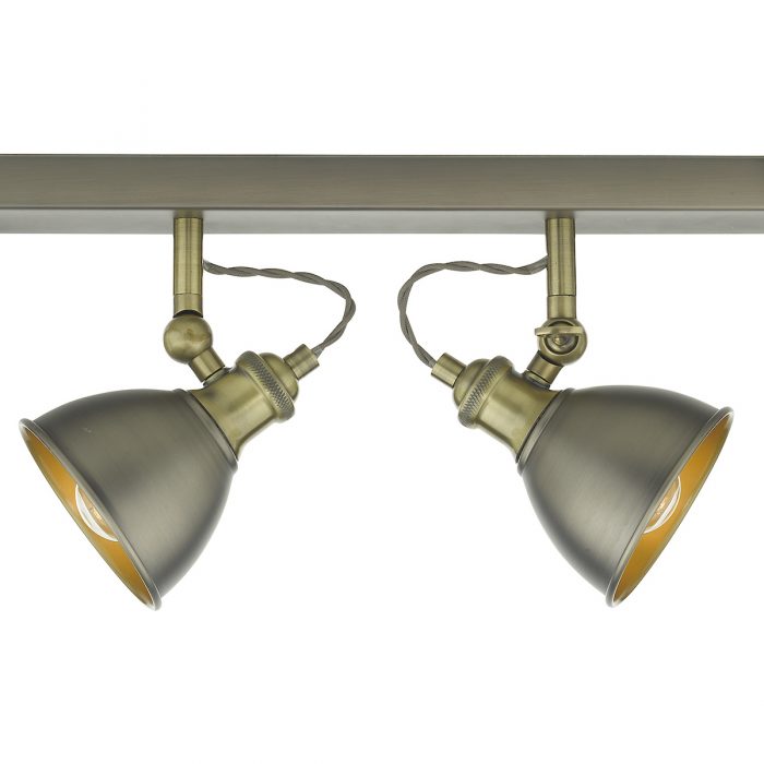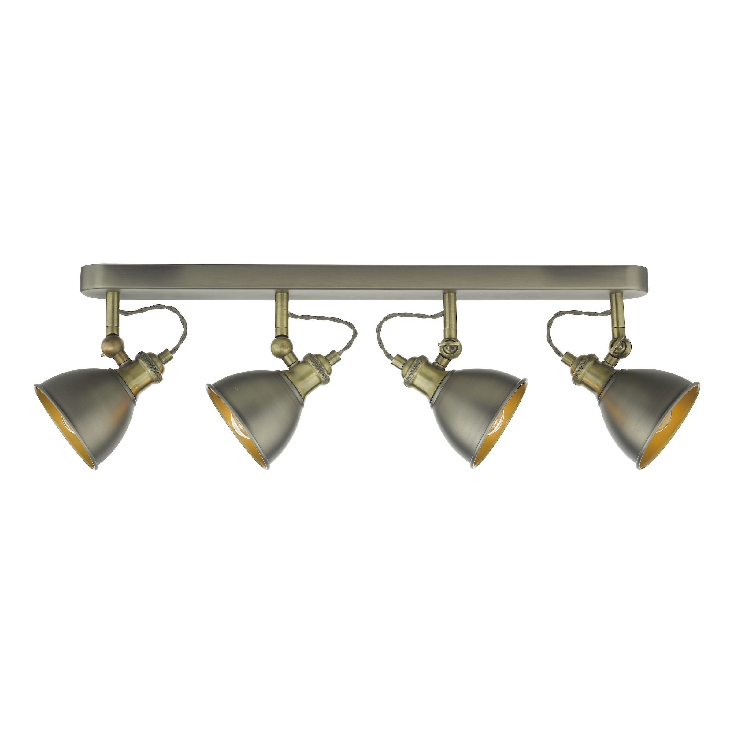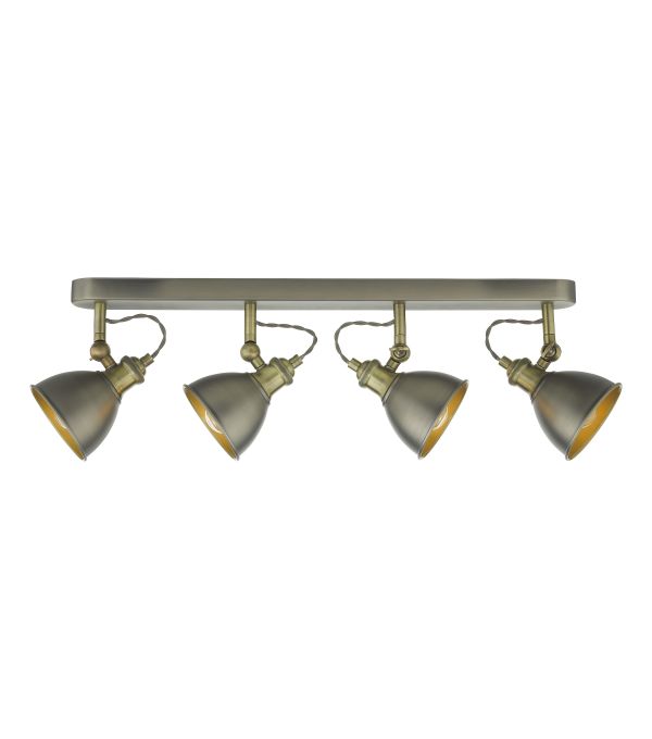 A 4 light bar spotlight finished in a mix of antique chrome & antique brass.