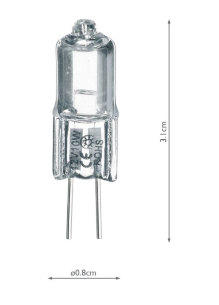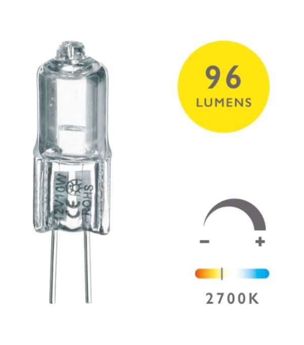 Dimmable Halogen G4 Light Bulb (Lamp); 12V; 10W; 96LM; 2700K Warm White