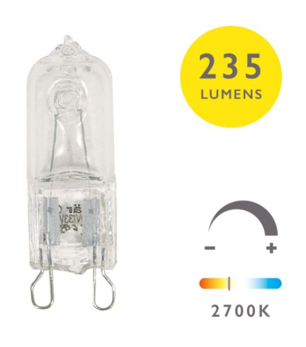 Dimmable Halogen G9 Light Bulb (Lamp); 240V; 20W; 235LM; 2700K Warm White