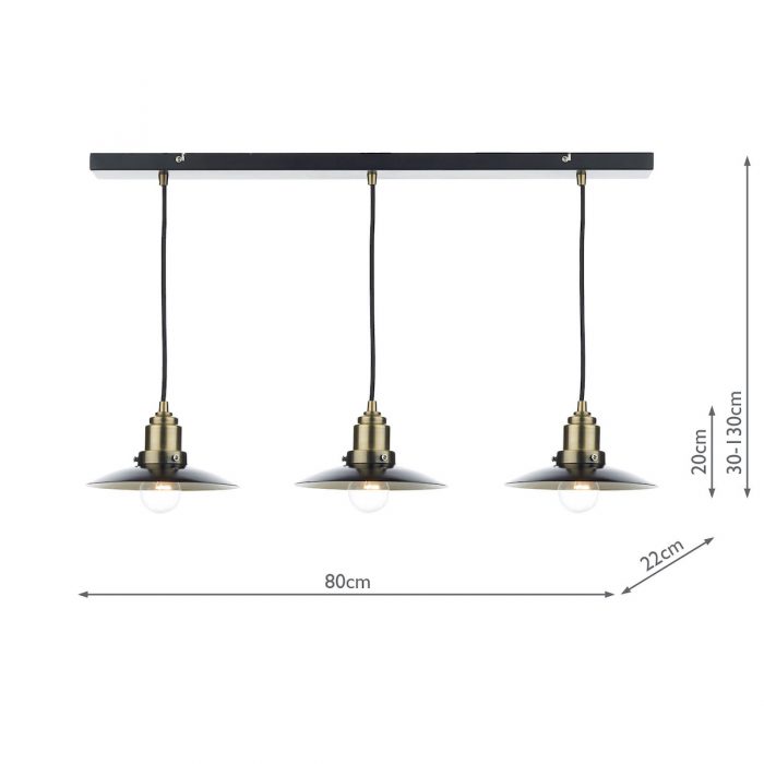 Be the first to review “Hannover 3lt Black & Antique Brass Bar Pendant”