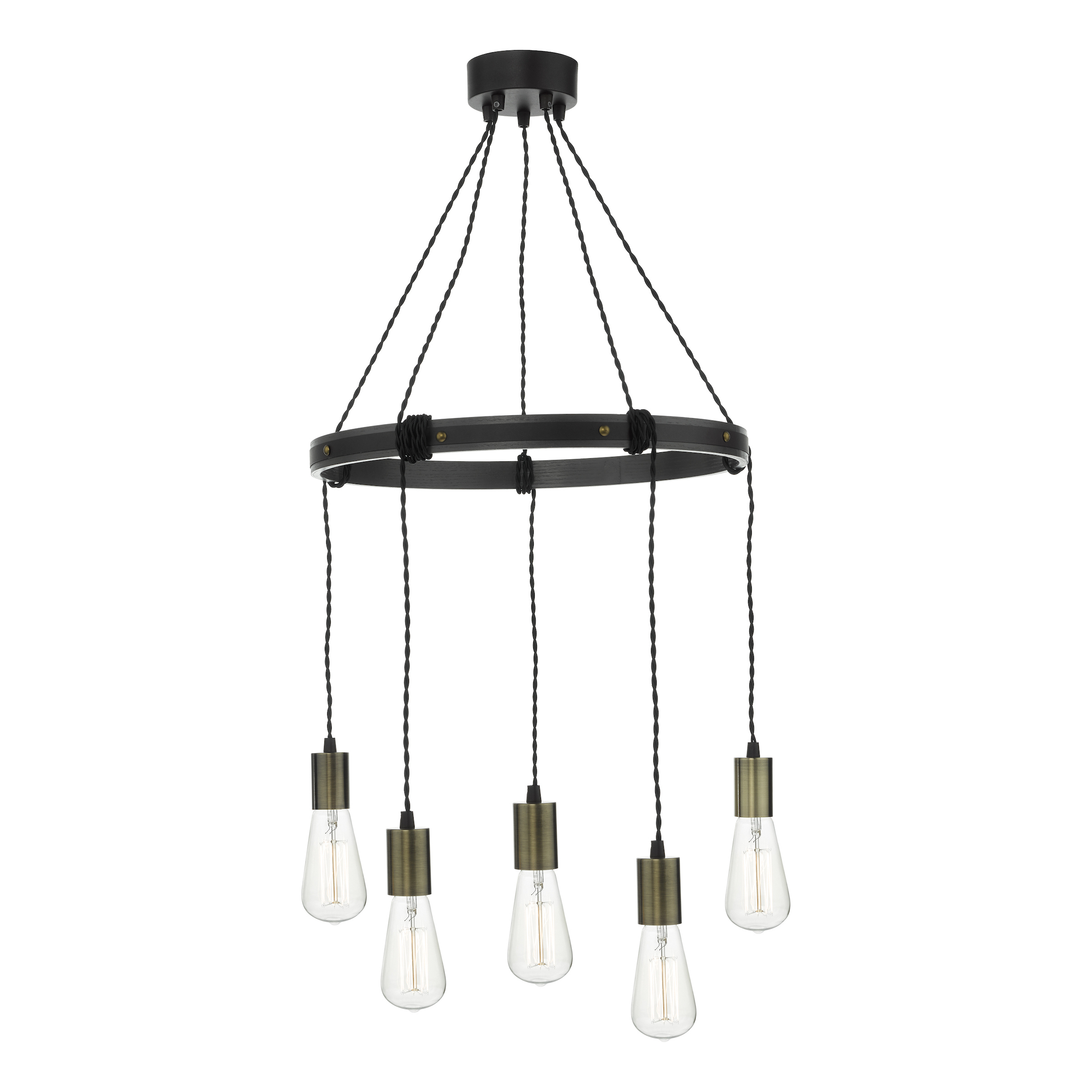 Ivan 5lt Rustic Wood & Brass Cluster Pendant
