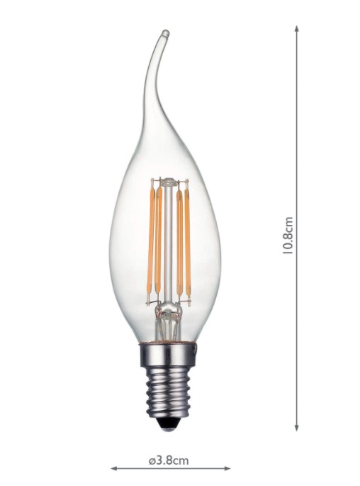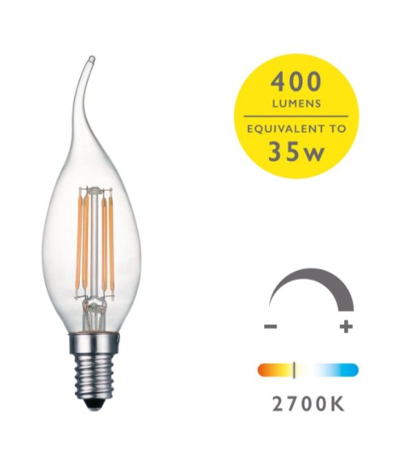 Dimmable LED Flame Tip Candle Light Bulb (Lamp) SES/E14; 4W; 400 Lumens; 2700k Warm White; Clear Glass