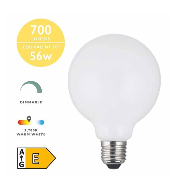 Dimmable LED Medium Globe GLS Light Bulb (Lamp) ES/E27; 6W; 700 Lumens; 2700k Warm White; White Opal Glass