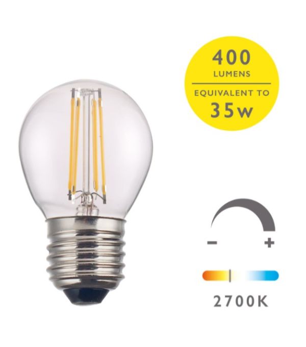 Dimmable LED Golf Ball Light Bulb (Lamp) ES/E27; 4W; 400 Lumens; 2700K Warm White, Clear Glass