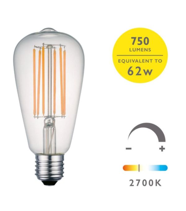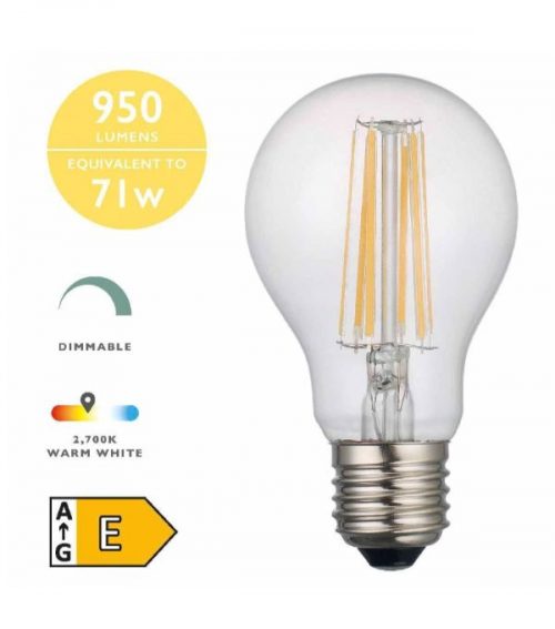 Dimmable LED Rustika GLS Light Bulb (Lamp) ES/E27; 7W; 750 Lumens; 2700k Warm White; Clear Glass