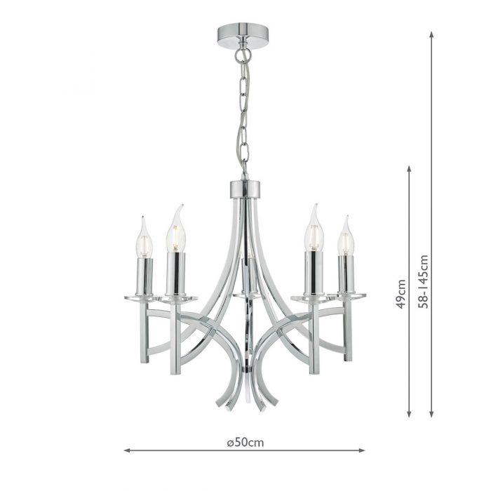 Lyon 5lt Polished Chrome & Crystal Armed Pendant