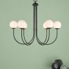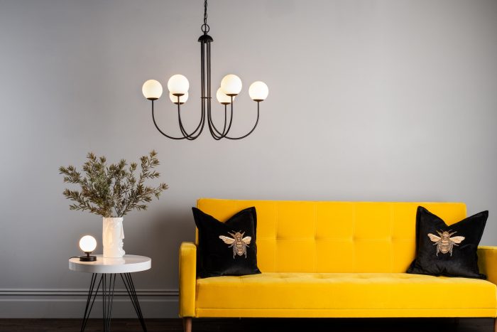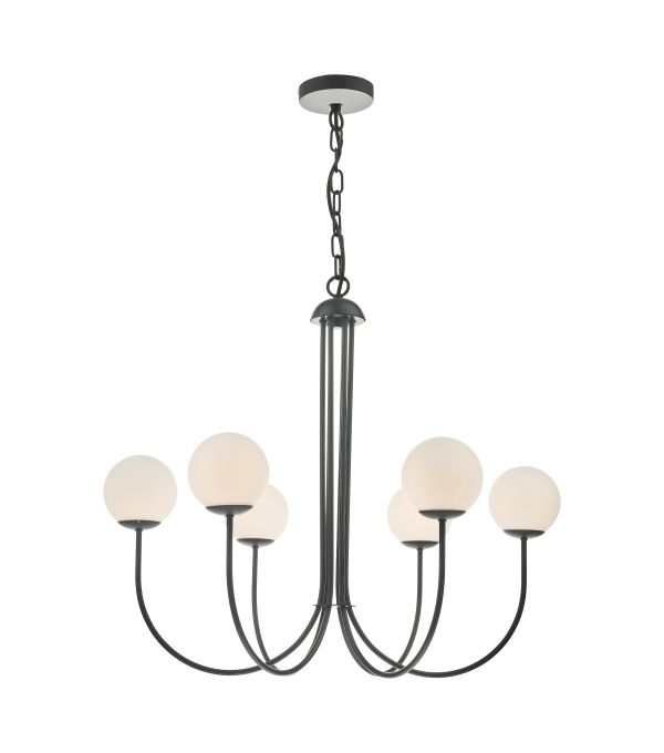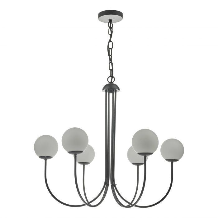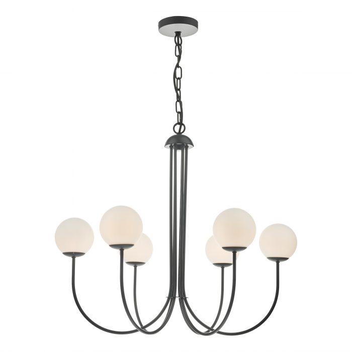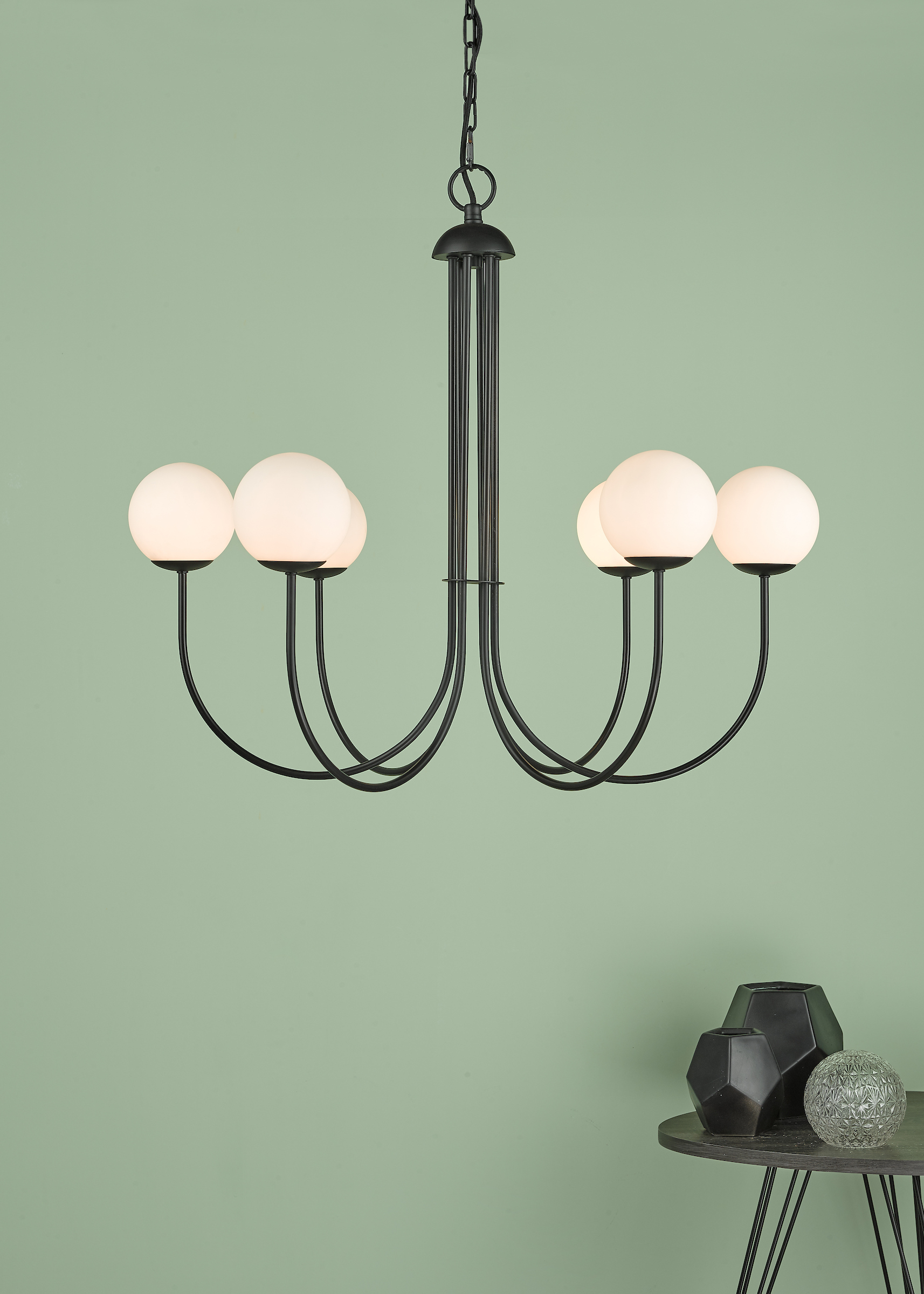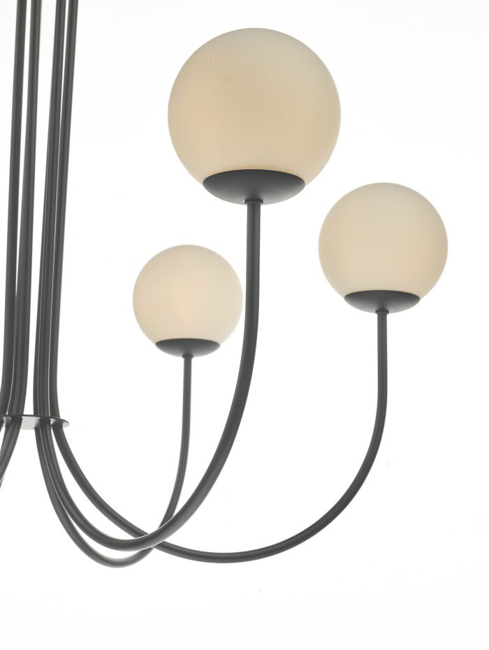 A large pendant light in a matt black finish, complete with smooth opal glass.