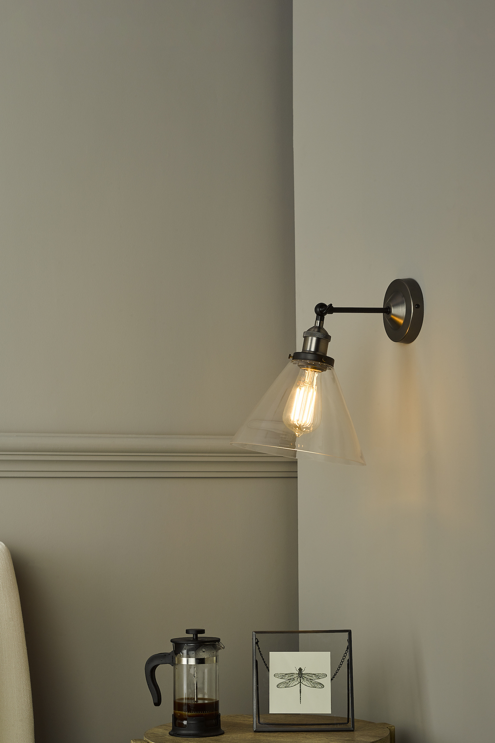 A 1 light wall light finished in either antique brass or antique nickel & glass shades.