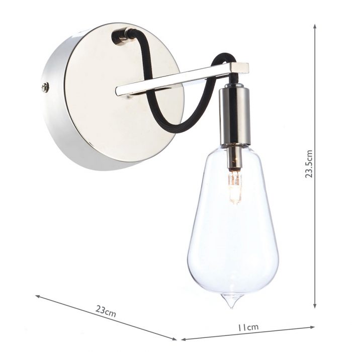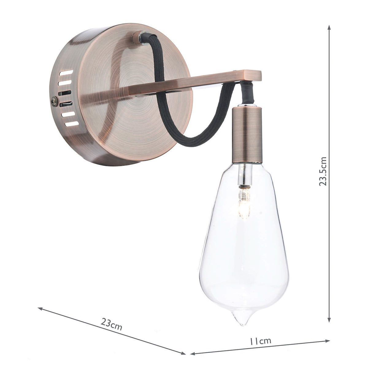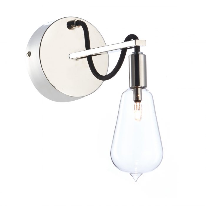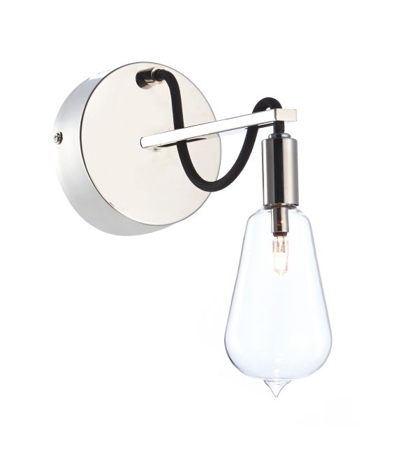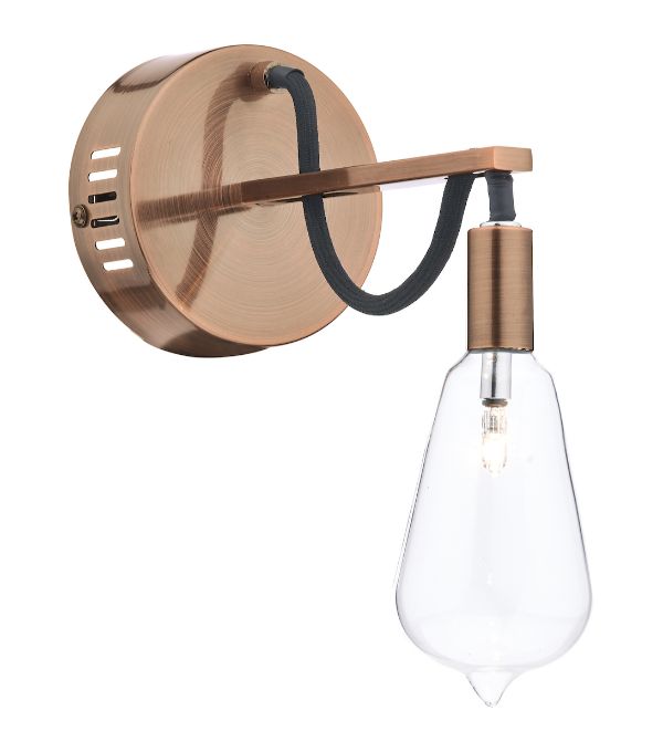 A 1 light wall light featuring either a copper or a polished nickel ceiling plate & frame. With black braided cable & G4 lamps set within a glass shade to give a vintage appearance.