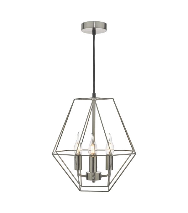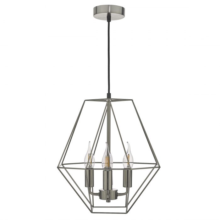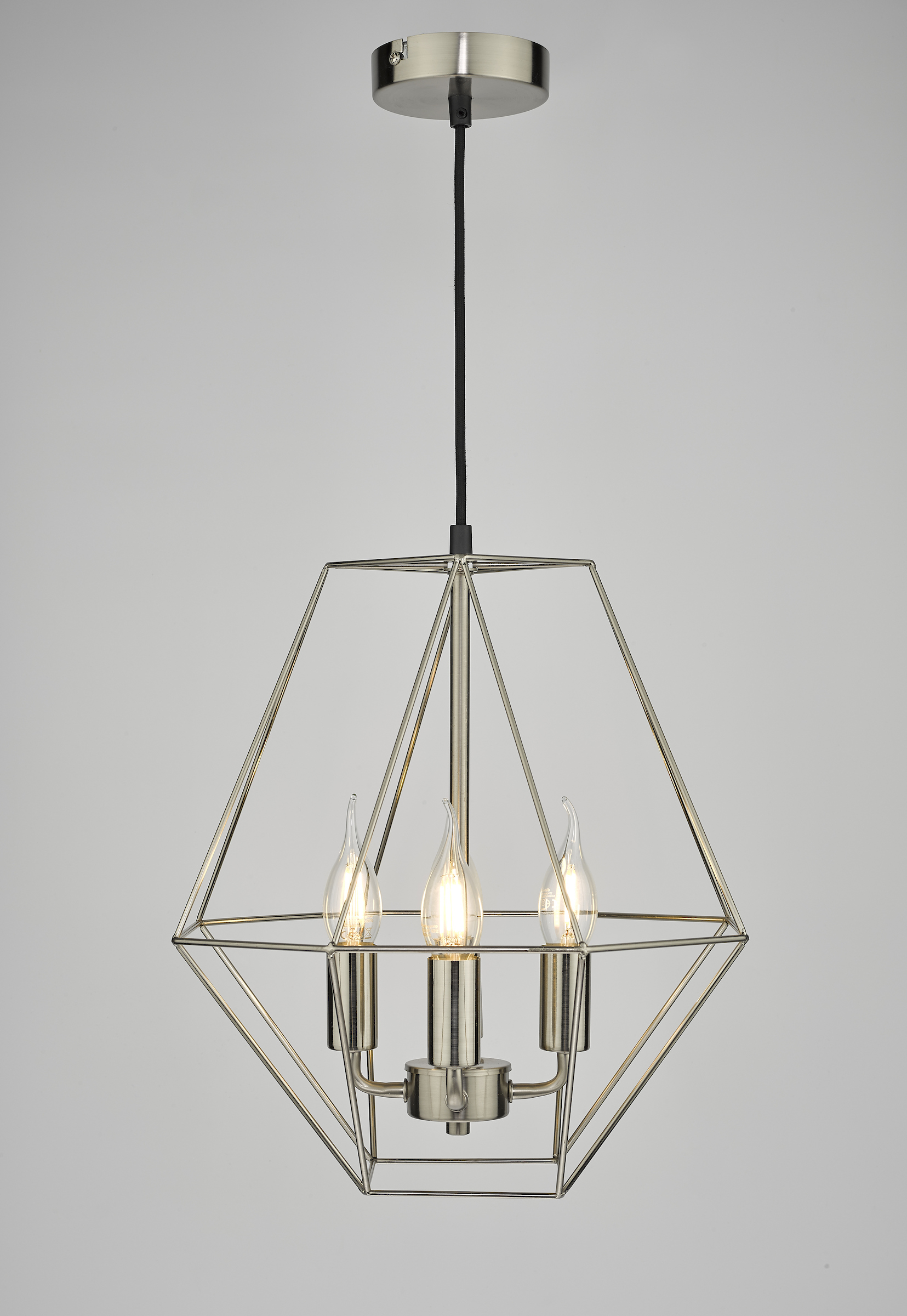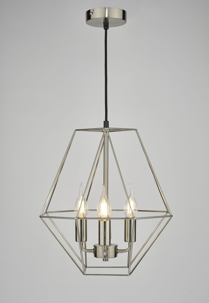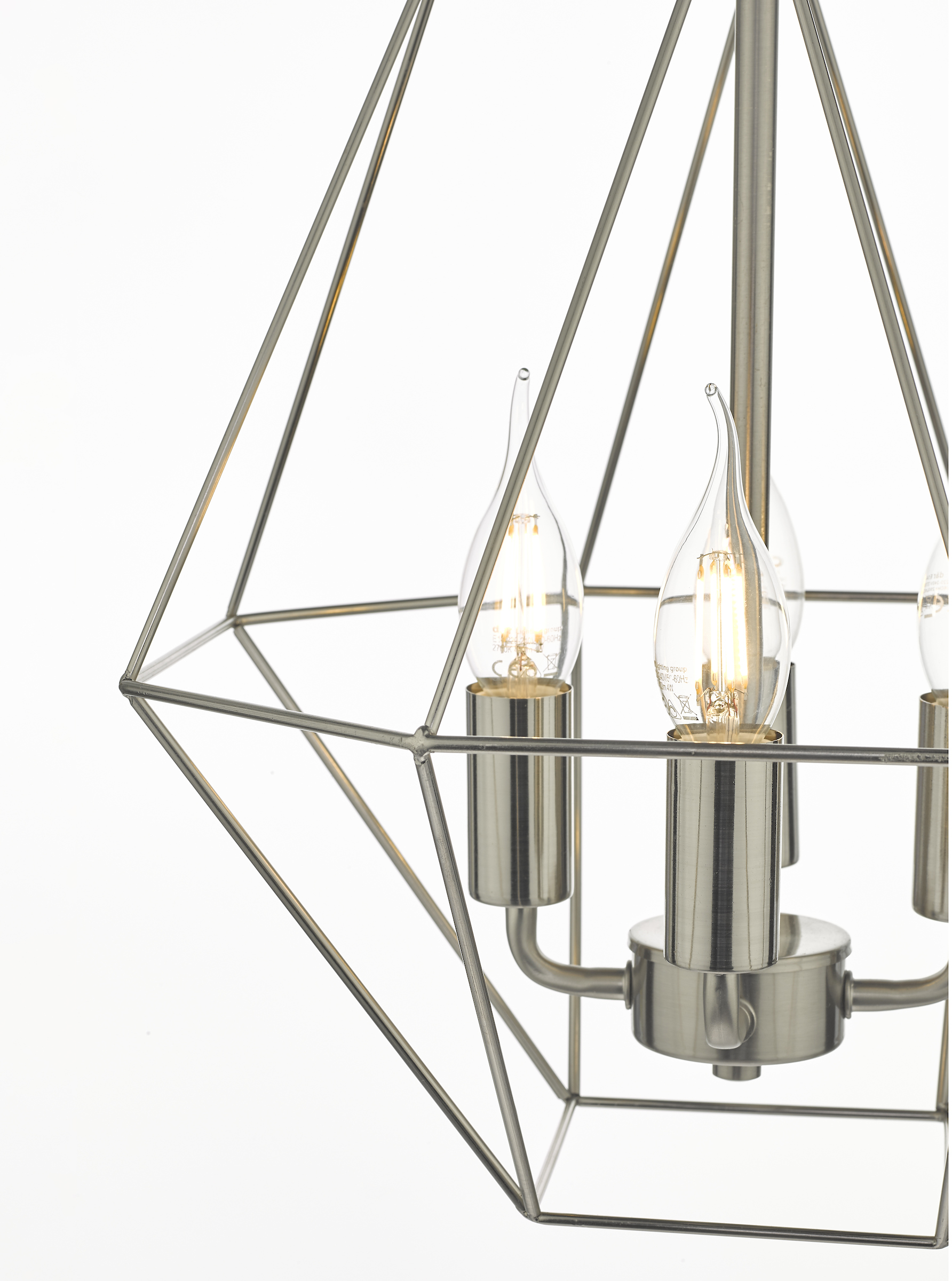 Consisting of 4 lights hanging inside a wire structure, reflecting the form of a cut diamond.