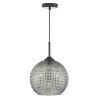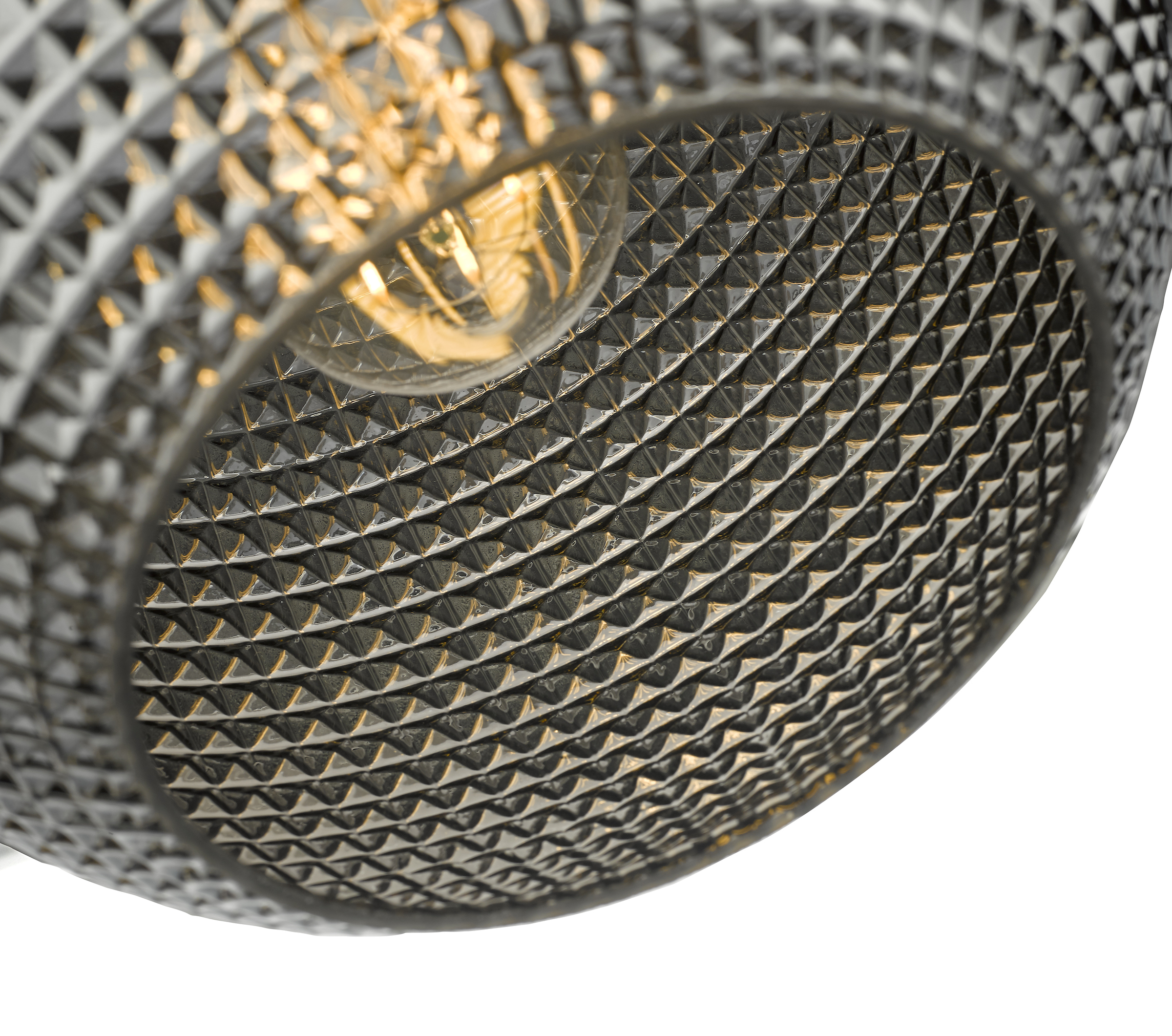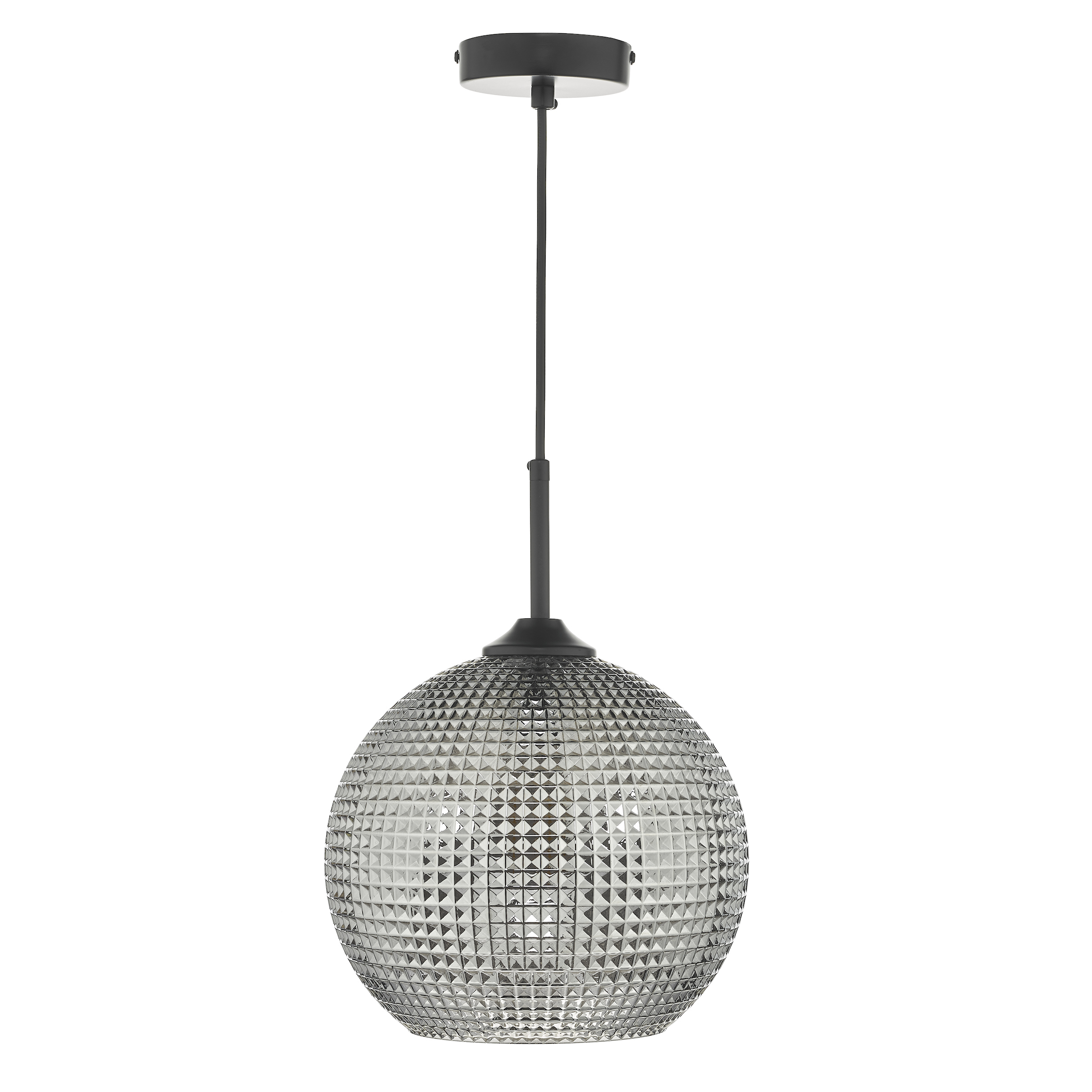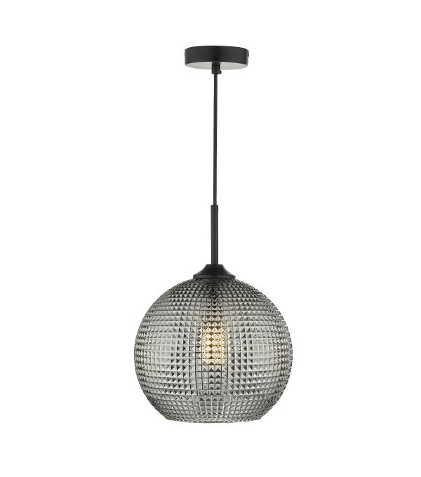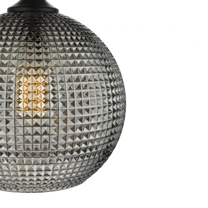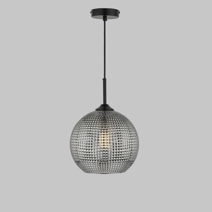 A smoked glass pendant with a diamond shaped textured glass shade.